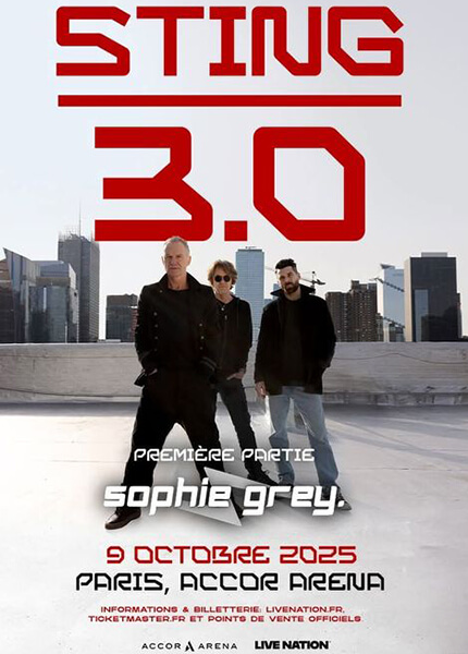 Sting à Paris - Tournée 3.0 : La voix inimitable de Sting résonnera à nouveau dans la capitale : l’icône britannique revient sur scène avec sa nouvelle tournée “Sting 3.0”, pour un concert unique à l’Accor Arena le jeudi 9 octobre 2025.